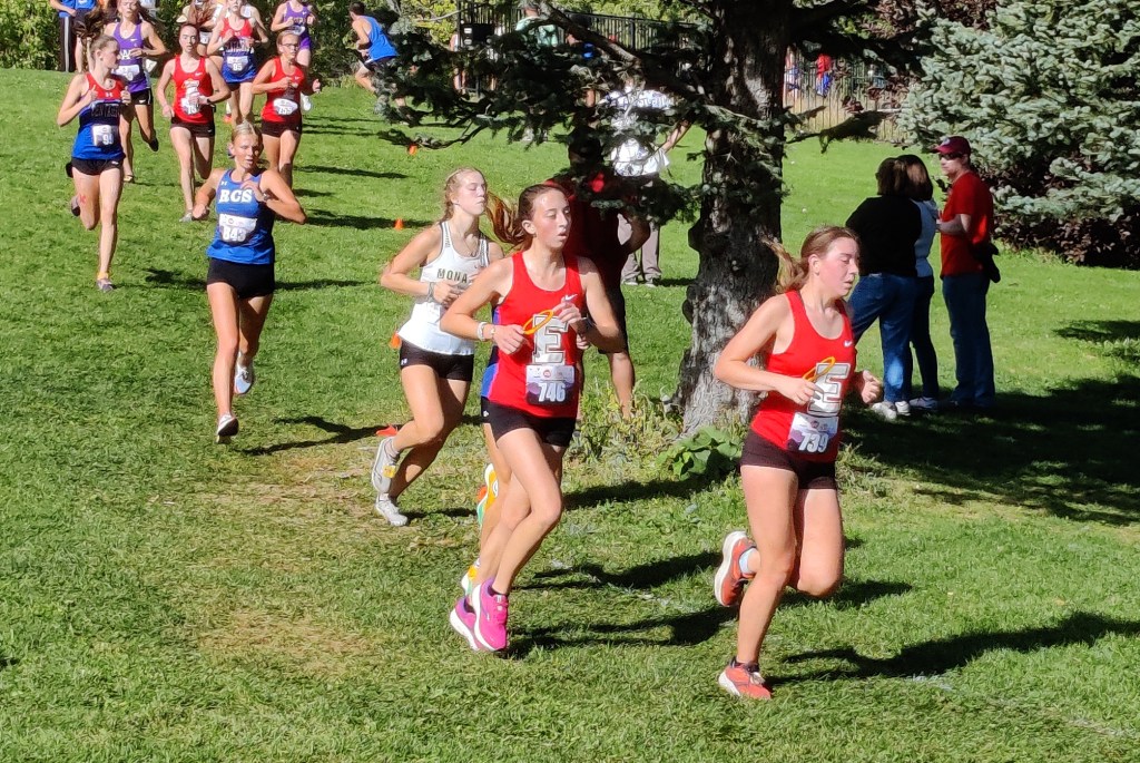 All of East’s teams have been somewhat depleted due to apparent viral illnesses the last couple of weeks, none more so than the Boys Varsity who have also run the last two weeks without their usual low stick, Corbin Hobert, who has been out with a stress fracture. East underclassmen Jonas Scudamore and Henry Bennett seem to have dodged the worst of whatever virus has plagued the team thus far, as sophomore Scudamore led the Angels for the second consecutive week with his 20th place 16:38 finish and freshman Bennett had one of his best races of the season in 16:57 for 34th place. Senior Quinn Higgins held on for 39th in 17:04, while his classmate Ben Hopper, looking stronger every week, ran 18:13 for 86th. Junior Kai Luna finished the scoring for the Angels with his 95th place finish in 18:30. Seniors Charlie Keglovitz (126th, 19:53) and Garrett Johnson (129th, 20:12) finished in the 6 and 7 spots for the Angels, who settled for an 11th place team finish.