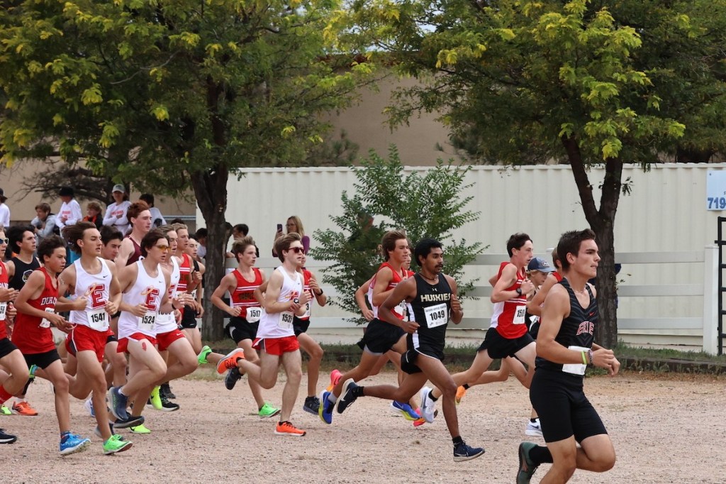 The Varsity Boys were offered the opportunity to race next, with 280 runners from at least 40 schools and 7 states racing in the most competitive boys division. Up front, junior Jonas Scudamore would hang close to the top-10 through the mile, battle for places 6th – 8th over the second half of the race, and eventually secure 7th place in 15:46. Senior Connor Beardsley, as he has most of the season, crossed the line as East’s second runner in 17:30 for 122nd place. The rest of the team hung way back early and moved up substantially by the finish. Sophomore Toby Penner ran 17:46 for 153rd, while freshman Emery Wagner continued to show good week-to-week improvement with his 189th place finish in 18:07. Sophomore Isaiah Springer finished 205th in 18:17 followed closely by juniors Ben Brown 208th in 18:18 and Beckett Nelson-Gardner in 18:21. The Varsity Boys finished 26th place in the Gold division.