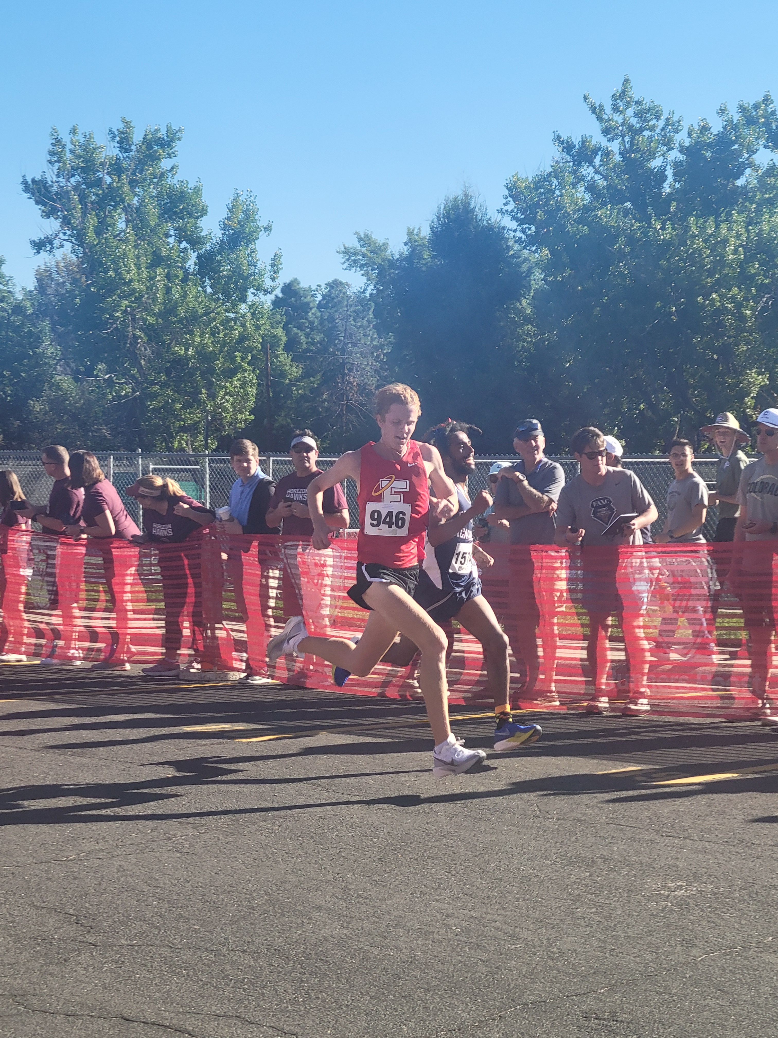 The East Boys competed in the Division 1 races at Liberty Bell this year – the division for large schools not invited to the Sweepstakes Division – the race in which every team, more or less, is ranked in the top-10 in Colorado in their respective division. This change in divisions from the last two years was actually a favorable development for our young team, allowing the Angels in the varsity race to run closer to the front against suitably strong competition. The East Boys took full advantage of this situation, with six of the seven boys running lifetime bests with an average improvement of nearly 50 seconds per runner for 5K. Junior Jonas Scudamore led the way for the Angels with a solid finishing kick to take 2nd place overall in 15:31. Senior Conner Beardsley took 41 seconds off his personal best with a 16:29 20th place finish followed by sophomore Toby Penner in 38th in 16:59 and junior Ben Brown in 44th in 17:07. Sophomore Isaiah Springer knocked 75 seconds off his previous best time, clocking a 17:54 for 82nd place. Freshman Emery Wagner crossed in 18:22 for 106th and senior Finn Egan 120th in 18:47. The East boys finished 6th of 22 scored teams in the division.