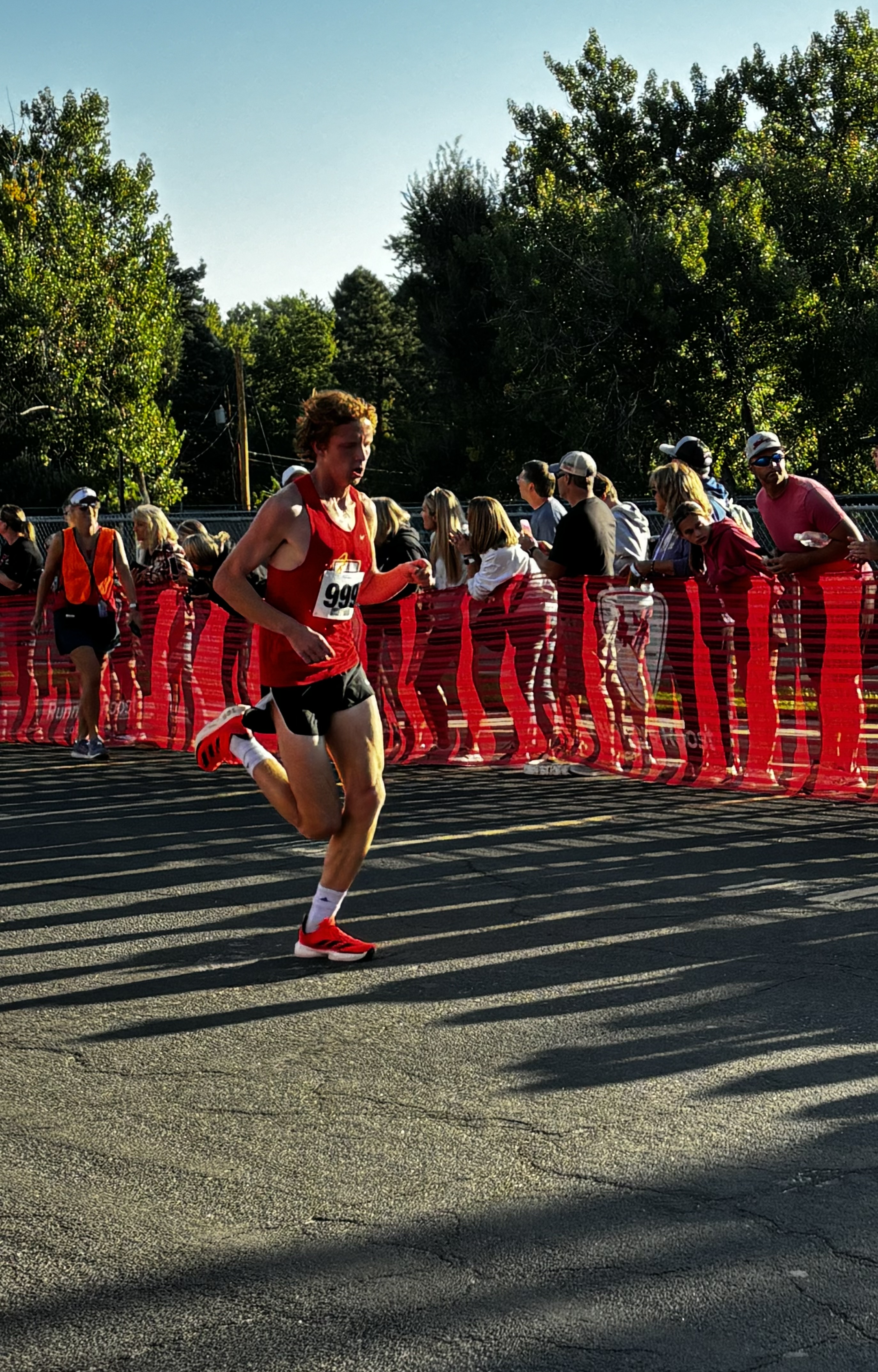 The Boys Varsity D1 race got started just as the Sweepstakes Girls were finishing. Junior Henry Bennett moved himself up into the top-10 runners in the race by the 2-mile mark and secured 10th place with a personal best 16:06, a time that moves him up to #9 among all East runners in races run in Colorado. Junior Isaiah Springer had a breakthrough run, dropping a 16:35 for a massive personal best and 24th place. Senior Ben Brown crushed what had been the elusive sub-17 barrier running 16:49 for 39th. Sophomore Emery Wagner also broke 17 minutes for the first time, running 16:59 for 48th. Junior Toby Penner took 85th in 17:50, while his classmate Micah Gallantz seemed to adjust just fine to varsity, clocking a personal best 18:02 for 94th. Junior Abraham Morginsky took 136th in 18:53. The East Angels took 7th of 22 teams in their division. Had Scudamore joined his teammates in that race, the Angels would have won the D1 team title; had his teammates joined him in the Sweepstakes race, the Angels would have taken down a half dozen of the 23 schools assigned to that division.