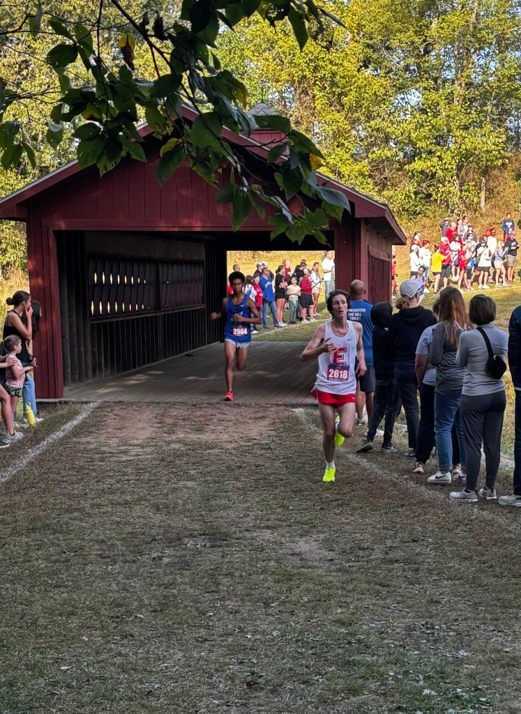 In the Boys race, the Angels were again led by senior Jonas Scudamore, running in his 4th State Meet – possibly just the second Angel boy to do so (though the archives are incomplete). Scudamore finished 17th in his final race at Norris Penrose in 16:00. Behind him junior Henry Bennett left it all on the course, moving up from 63rd at the mile to 49th at the finish in 16:29. The rest of the Angel scorers, all running their first state meet, started out conservatively and moved up aggressively. Junior Isaiah Springer went from 126th at the mile to a 93rd place finish in 17:06, senior Ben Brown went from 129th to 112th in 17:22, and sophomore Emery Wagner went from 131st to 117th in 17:28. Rounding out the finishers for the Angels were juniors Jackson Gertge in 18:17 for 146th and Abraham Morginsky in 18:39 for 151st.